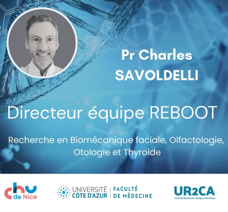 Nous avons le plaisir de vous présenter le Pr Savoldelli Charles , chirurgien maxillo-facial, et directeur de l’unité de recherche REBOOT (Recherche en Biomécanique faciale, Olfactologie, Otologie et Thyroïde).